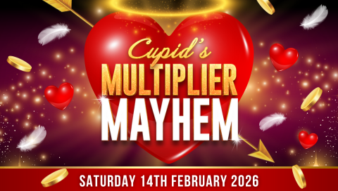 Fall head over heels on Saturday, 14 February, with your chance to win a share of up to $1,950 CASH, with Cupid's Multiplier Mayhem draws every 30 minutes from 8:20pm-10pm