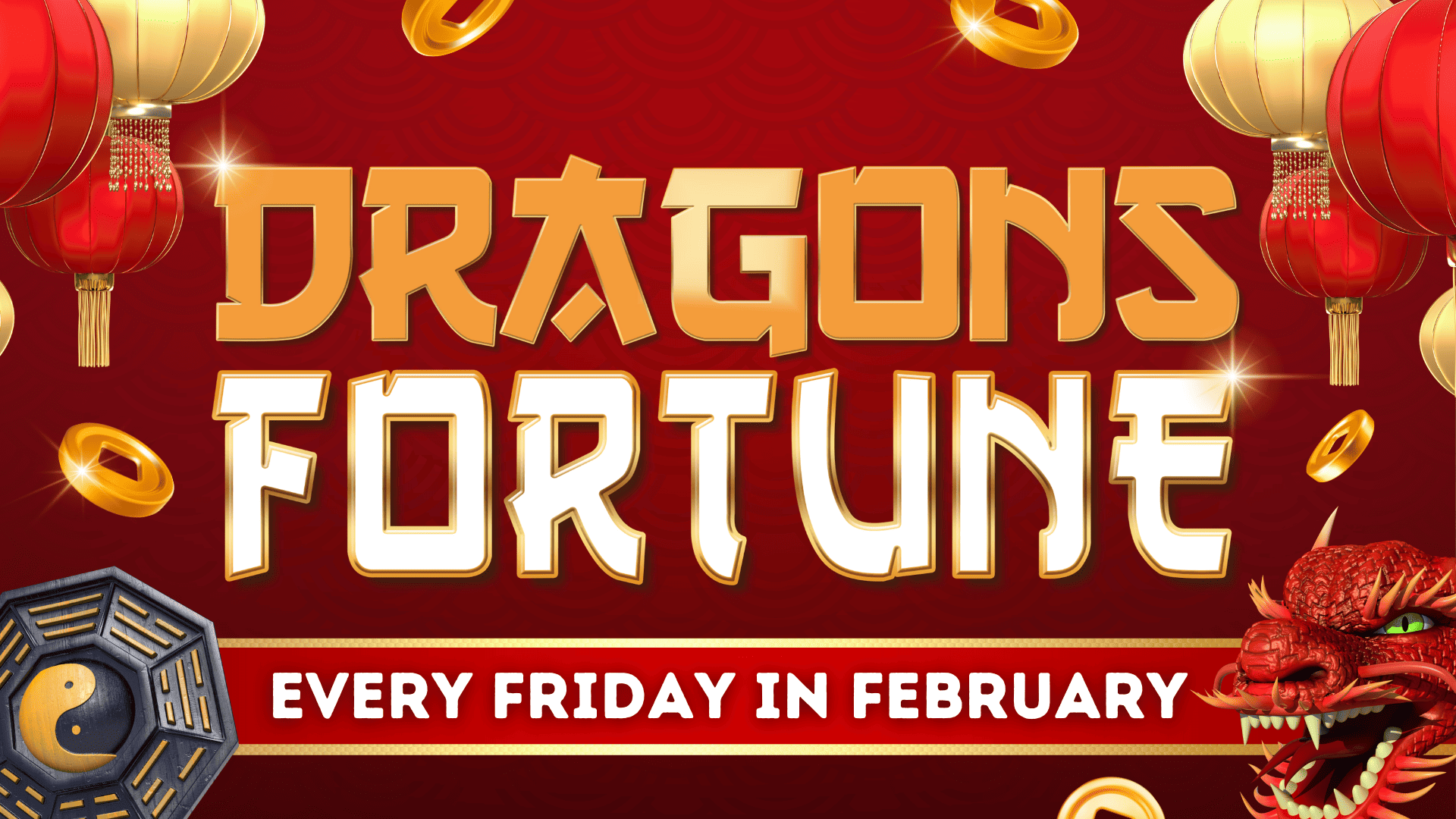 Fridays in February bring the heat with Dragon’s Fortune, giving you a chance to grab a share of $400 CASH every week